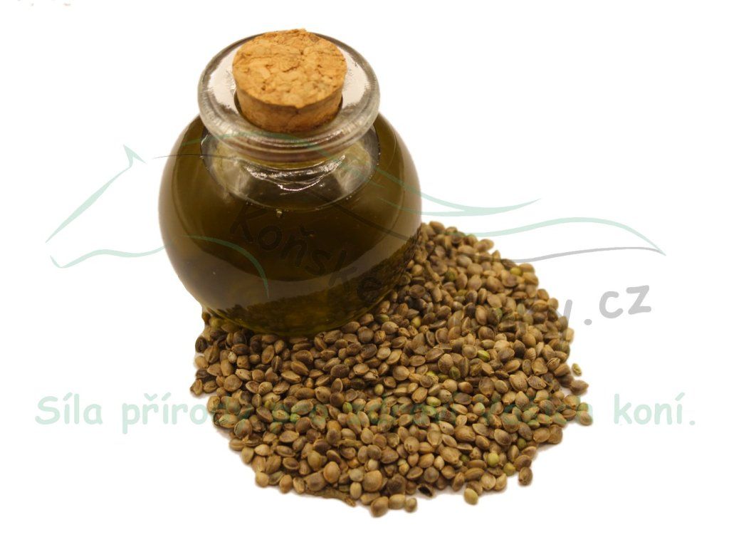 Konopný olej krmný za studena lisovaný ze semen registrovaných odrůd s povoleným množstvím THC do 0,3%.