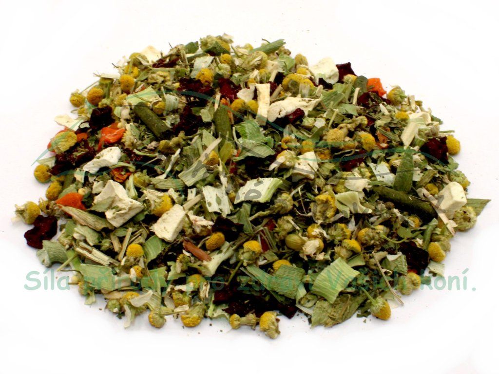 Složení: jáhlové vločky, pastinák, mrkev, petržel, heřmánek, kopřiva, konopný šrot, červená řepa, pórek, špenát.