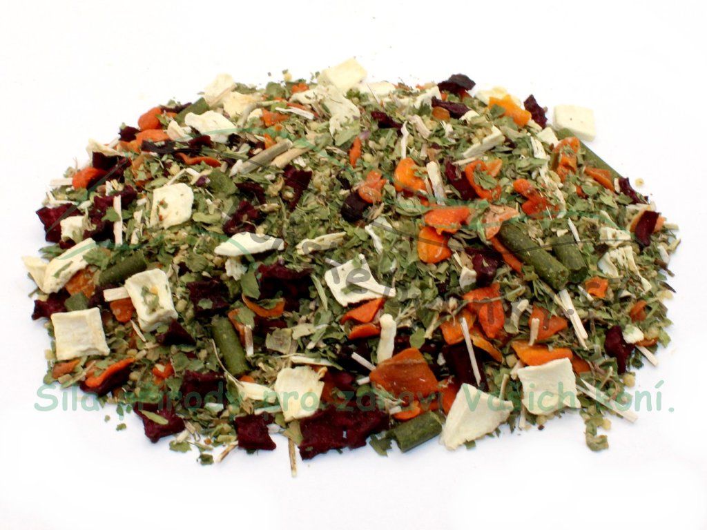 Složení: kuskus, mrkev, červená řepa, petržel, pastinák, špenát, šípkové výlisky, oregano.